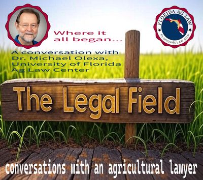 Welcome to the Legal Field Podcast. where we discuss legal and regulatory topics that are of critical importance to the agriculture industry. My name is Amanda Perry Carl, and I am an agricultural lawyer whose family has been farming in Florida since 1823, before Florida even became a state. I have spent almost 20 years as an attorney in the agricultural industry and have made it my mission to ensure that everyone in our incredible industry understands the legal and regulatory issues that we face so that we can keep feeding Florida, America, the world. So if you're a farmer, rancher, or grower, if you're involved in raising cattle, sheep, poultry, goats, hogs, horses, or other livestock, if you grow fruits, vegetables, or sod, if you are involved with the aquaculture, turfgrass, or horticulture industries, if you are fighting the good fight to help our citrus industry survive, or if you just like to eat and you appreciate our ag producers, this podcast is for you. If you are interested in protecting and preserving our agricultural heritage, lands, and way of life, then come join us in the legal field and see what's growing on. Hello and welcome to our first ever episode of the Legal Field Podcast. I am Amanda Perry Carl, and I am the host of the podcast. And today we are so excited that our very first guest of the Legal Field Podcast is a person who was very instrumental in even introducing me to the concept of being an agricultural lawyer and instrumental in the trajectory of my career, Dr. Michael Olexa. Dr. Olexa works at the University of Florida as a professor in both the College of Ag and an undergrad in the College of Ag and Life Sciences. And he also is the director of the UF IFAS Center for Ag and Natural Resources Law. So Dr. Olexa, thank you so much for being here with us today.